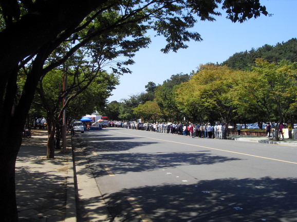 9월15일 오전 치아 치료를 받고 시골 농장으로 가는 중 두류공원에 잠시들러 공원 매점에서 커피 한잔 뽑아 들고는 매점앞에 비치해둔 의자에 앉아 커피를 마시면서 기호친구에게 msn파발을 띄웠다. 조금 있어니 신호가 왔다.사업적으로 경주에 갔다가 영천휴게소 지나 대구로 오고 있다는 이야기다. 30분쯤 후에 도착한다는 내용으로 전화 폴드를 덮고 마시던 커피 마저 마시고는 기다리는 시간 공원 산책이나 하기로 했다. 그간 자주 찾아왔던 공원, 친구와 약속, 비지니스적 약속, 마눌과 약속, 일상에 지칠때도 뜨문뜨문 찾아와 쉬었던곳이다, 언제 보아도 새롭다 9월의 중순 초가을의 날씨는 한낮이 가까워 올수록 따갑게 느껴진다. 삼삼오오 짝을지어 운동하는 사람,벤치에앉아 정담을 나누는 사람 커피를 마시는사람 형형색색이다. 카메라에 잡힌 성당못 호수 담수는 맑고 깨끗한 것처럼 보이지만 옛날 소먹일때 마굿간옆에 고여있는 소지랑물 수준이다. 두류공원을 찾는 사람들 거의 이 못을 보고 갈 것이다. 볼때마다 어떤 생각들을 하며 지나갈까. 이백오십만이 넘는 우리나라 3번째로큰 대구광역시 그 중앙에 시민들의 휴식 공간으로 자리잡은 두류공원에 위치한 성당못 언제나 저 사진속의 색깔같이 맑고 깨끗하고 푸른물을 만들수는 없는 것일까? 이곳엔 대구를 소개하는 대구관광접보센터가 있고 전당인 문화예술회관이자리잡고 있어며 주요 시설로는 축구장,야구장,테니스장,롤러스케이트장,골프연습장,다목적운동장,수영장,유도관등 체육시설과 두류도서관 2'28기념탑,야와음악당,조각동산,금용사,대성사절이있어며 여기에 성당못과 못중앙에 분수대가 가 있다। 더없이 높아가는가을하늘 시원한 물줄기를 뿜어내는 성당못 분수대 옆에 위치한 정자 이정자를 연결하는 다리위에서 고기밥을 던져주는 사람들의 입에서 그리고 성당못을 보는이로 하여금 정말 맑고 깨끗한 물을 보여 주었어면 싶다.이런저런 생각과 구경중인데 갑자기 사람들이 한곳으로 모여 줄을서고 있었다,자세히보니 점심을 그르는 분들을 위해 마련된 사랑의 나눔 밥차를 앞에두고 줄을서고 있는 것이다 가까이가 이리저리둘러보니 현수막이 있었다. 신종 플루로 인해00월00일부터식사 제공이 중단된다는 문구였어며, 진열해놓은 몇장의 그림속에는 학대로 인해 상처입은 노인분이 이었고 늙은 노모님 주름살펴는 효자 자손도 있었다. 학대 행위나 버려진 주위 분들이 있어면 연락하라는 글도있었고 주위에 서 계신 노인분들에게 전화번호가 적힌 두알의 사탕이 담긴 사탕과 볼펜을 나누어주고 계신 할마니도 있었다.그옆에 어떤 허럼한 차림의 노인분이 다가와 말하였다. 우리 옛날시절에 상상도 못한 현실의 복지 정책이재! 밥줘여 용돈줘여 오래살아라고 병고쳐줘여 이렇게 대우해주니 얼마나 좋은 세상인기요 하고 말하니 주위 분들이 묵묵히 고개만 약하게 끄덕이고 있었다. 뒤돌아서오는 나는 그 옛날 합바지 시절 앞도 뒤도 돌아보지 않고 오로지 잘살아 보겠다고 열심히 살아오신 분들 그 노고를 자식들 앞에 아깝지 않게 투자하셨던 우리 부모님들을 생각하면 오히려 더 잘해드리지 못한점 부끄러울 뿐이다. 이분들에 되한 최소한의 대우가 아닐까 싶고 아직 혈기가 조금 남아 있을때 열심히 일해 더 좋은 복지 정책에 동참하고 싶다. 깊은 생각속에 걷고 있을때 울리는 벨소리에 열은폰뚜껑 뭐하노 니차옆에 와가 있다 빨리온나 하는 친구의 목소리다 친구와 해후를 마치고 나는 다른때보다 더 열심히 하리라 마음먹고 시골 농장으로 향했다.