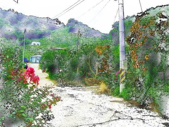 동적인 도회지에 비에 상당이 정적인 마을이며 한가롭고 여유있게 느껴지지만